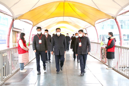 张世珍一行先后前往学生餐饮文化中心、兰天学生公寓、学生公寓综合体项目现场等重点区域,实地查看餐厅防疫、学生就餐、校门管控、“软隔离”路线、公寓防疫、线上教学及重点项目施工情况,并听取相关工作汇报,与学生、志愿者进行交流。