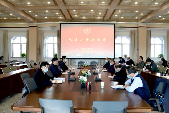 座谈会上,田澍传达了省委组织部《关于认真学习贯彻中央人才工作会议精神的通知》,相关职能部门负责人围绕学校人才引进、师资培养、团队建设、岗位考核、职称评审、教学评价、绩效考核进行了交流发言,提出了建议。