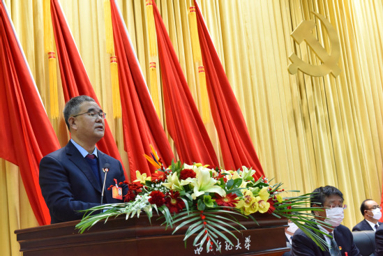 大会的主题是:高举中国特色社会主义伟大旗帜,以习近平新时代中国特色社会主义思想为统领,坚持社会主义办学方向,坚持立德树人根本任务,立足高等教育新发展阶段,贯彻高等教育新发展理念,融入高等教育新发展格局,坚守师范使命,再塑发展优势,着力构建高质量教育体系,团结带领全校师生员工,在全面振兴中西部高等教育的历史进程中,奋力开启一流大学建设新篇章!