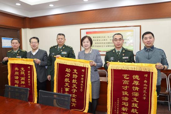 1月24日,酒泉卫星发射中心副政委朱大雄少将一行在甘肃省教育厅召开座谈会,对于甘肃省教育厅、日韩人妻无码一区二区三区久久99_日韩精品一区二区三区中文在线_无码日韩精品一区二区免费_久久久91精品国产一区二区三区_亚洲精品久久久一区黄无码_国产91精品一区二区麻豆网站_成人国内精品久久久久影院对《两弹一星》组歌创演工作大力支持赠送锦旗表示感谢。