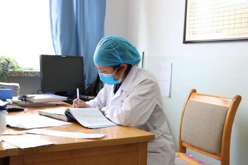 早晨8:00,46岁的校医院主治医师董翠珍准时来到预检分诊点与同事交接,他们需要详细将24小时内每一个病人的病情发展、用药量、注意事项核对登记。“预检分诊点需要医生24小时值守,经常要在凌晨将发热学生送至指定医院的发热门诊,经分诊初步筛查排除疑似新冠后,方可接回校医院临时留观点。在留观点,还需要我们对他们的病情进行合理的诊断医治,每一个步骤都马虎不得。”董翠珍说。从疫情发生以来,她就和同事们“战”在一起,举全力、用真心医治患者。即使从校医院到她的家中仅需要一分钟不到的路程,20多天的时间里,她却没有回过一次家,见过一次家人。