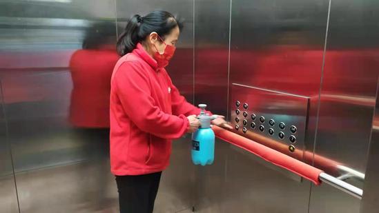 研究生公寓5号楼保洁员王亚琴每天早晨6点到中午12点,有时甚至到下午2点都在打扫卫生。电梯间、卫生间、洗衣机和楼道公共区域不时出现她忙碌的身影。她13岁的女儿就在附近上初中,但因防疫规定不能回家,只能微信视频见面,有时女儿的小牢骚会让她泪光点点,但为了工作仍然坚守在岗。