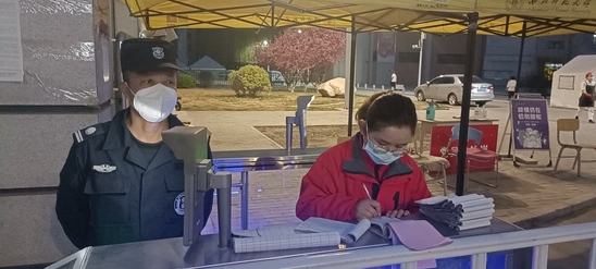 下午就餐时间,研究生公寓5号楼内的学生持“通行证”有序下楼来到大厅,楼管员毛凤秀正在值班岗位上查验“通行证”,有条不紊地测量登记体温,耐心叮嘱着同学们排好队有序出入。