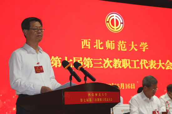 西北师大党委书记张俊宗出席会议,校长刘仲奎作题为《踔厉奋发 勇毅前行 为实现一流大学建设目标不懈奋斗》的报告,党委副书记、校工会主席刘玉泉主持大会。校领导田澍、董晨钟、马庆、李建民在主席台就坐,全体教代会代表、列席代表、离退休职工代表200余人出席大会。