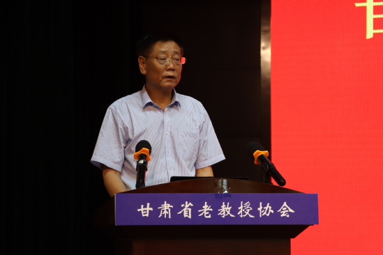 余学军在致辞中介绍了陇南师范高等专科学校办学情况及升本进展。他表示,各位老教授在不同的岗位上勤勉工作、辛勤付出,在促进甘肃教育高质量发展中作出了重要贡献。希望各位老教授一如既往发挥所长,继续发扬严谨治学、甘为人梯的精神,关心、支持甘肃教育事业的发展,为全面建设社会主义现代化幸福美好新甘肃出谋划策、贡献智慧。