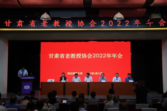 629日上午,甘肃省老教授协会2022年年会在西北师大举行。陇南师范高等专科学校党委书记余学军,西北师大党委常委、副校长李朝东出席并致辞;甘肃省老教授协会名誉会长、兰州大学原党委副书记李恒滨,甘肃省老教授协会会长杨克虎出席。省委老干部局退休处相关领导,省内17所高校及企业会员单位离退休工作部门负责人、老教授代表百余人参加会议。