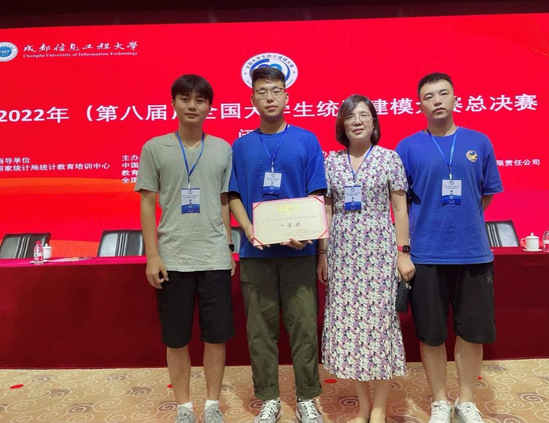 82728日,由中国统计教育学会、教育部高等学校统计学类专业教学指导委员会、全国应用统计专业学位研究生教育指导委员会联合主办的2022年(第八届)全国大学生统计建模大赛总决赛在成都信息工程大学举办。西北师大数学与统计学院共有8支队伍获得省级奖,其中2支队伍进入全国赛。经过激烈角逐,代表甘肃赛区的2021应用统计专业硕士研究生肖阳田、王振旭李杰获得研究生组全国一等奖,指导教师肖鸿民教授获得“全国大学生统计建模大赛优秀指导教师奖”。