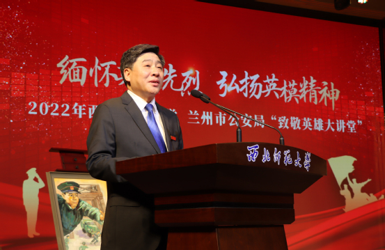 “从燕山脚下辗转至黄河之滨,历经抗战烽火,西北师大始终把心系民族独立、国家富强的强烈情怀化作坚实的爱国行动。在抗日战争时期、抗美援朝时期、改革开放和中国特色社会主义新时代,西北师大都涌现出了一批又一批投笔从戎、保家卫国、献身国防的英雄儿女。英雄精神已经深深地根植于每个师大人内心深处,成为师大人独特的精神气质。”西北师大党委书记张俊宗现场分享了百廿师大的爱国情与报国志。他表示,爱国主义是西北师大的优良办学传统、教育底色和红色基因,在一百多年的办学历程中,西北师大始终与祖国同呼吸、共命运,始终把崇尚英雄精神、培养英雄模范作为立德树人的重要内容。