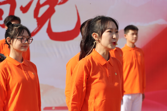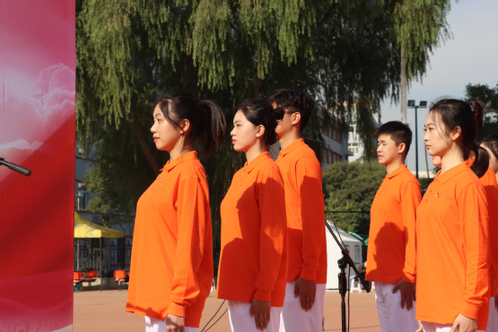 上午10时,在学校西操场,全体师生庄严肃立,伴随着嘹亮的国歌,五星红旗在校园冉冉升起。学校青年马克思主义者宣讲团和新生代表共同诵读《请党放心 强国有我》,同学们以掷地有声、铿锵有力的誓言表达了坚定信仰跟党走,争当伟大理想追梦人和生力军的决心信心,表达了青春心向党,践行立大志、明大德、成大才、担大任的时代要求。仪式最后,全体师生高唱《歌唱祖国》,用歌声献礼祖国,祝福伟大祖国繁荣昌盛、明日圆梦。