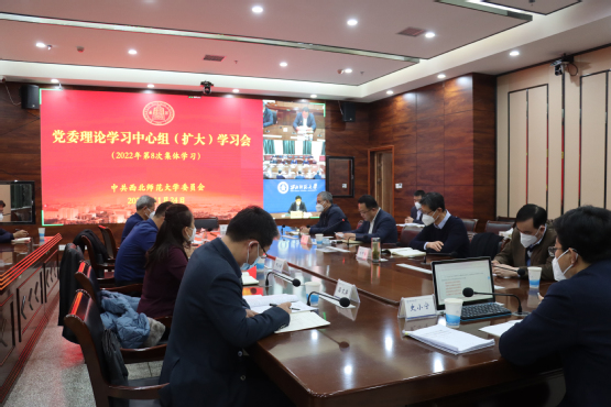 1124日下午,党委书记贾宁主持召开西北师大党委理论学习中心组2022年第八次集体学习会。校长刘仲奎,党委常委刘玉泉、田澍、马庆、李建民、邓小娟、吕文英线下参加学习;校党委委员、纪委委员和各基层党委(党总支)、各学院、各单位、机关各部门负责人线上参加学习。