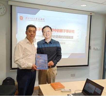 在南洋理工大学,马世年教授做了题为“诸子学史视野中的新子学研究”的学术报告。南洋理工大学中文系主任曲景毅教授主持。报告围绕传统四部之学的现代转型、20世纪以来诸子学内部的新进展、诸子学史的主要成就、现代诸子学史建构的四个维度以及诸子学史视野下对“新子学”的再思考等问题展开。南洋理工大学衣若芬、崔峰、罗必明等老师参与了学术讨论。