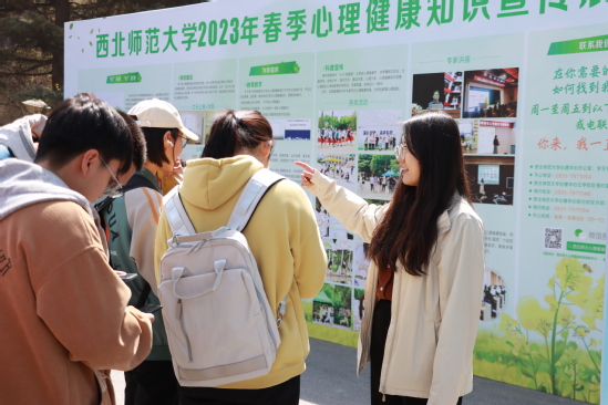 响应教育部关于加强学生心理健康管理工作的号召,提升西北师大师生心理健康素质,培养积极心理品质,培育理性平和的阳光心态,近日,我校在云亭校区、知行校区举办2023年春季师生心理健康知识宣传展活动。