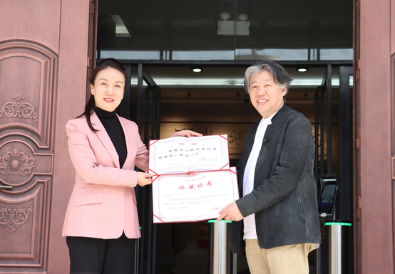 开幕式上,邓小娟为马刚颁发收藏证书、兼职教授聘书;马刚向学校博物馆捐赠作品《挥毫仿佛碧天秋》。