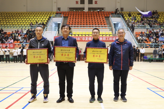 4月19日晚,由校工会、体育学院主办的“华夏银行”杯西北师大教职工排球赛在体育馆落下帷幕。党委书记贾宁、党委副书记刘玉泉出席并为获奖代表队颁奖。