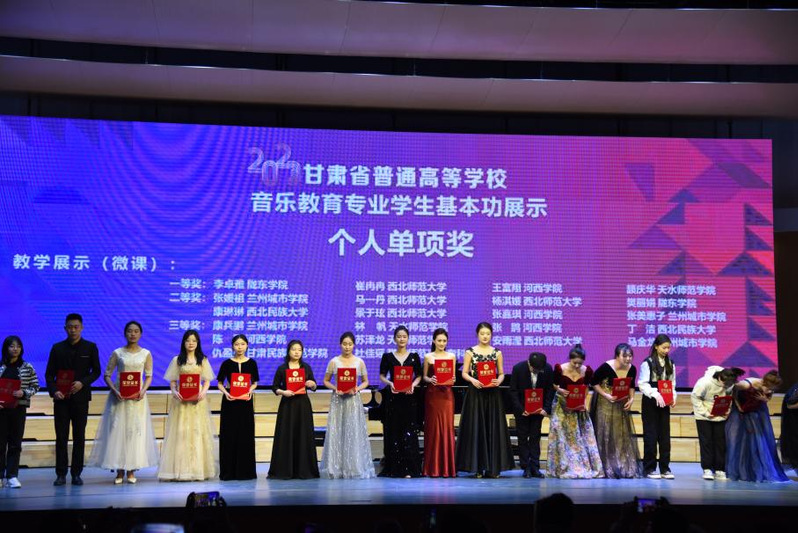 423日,由甘肃省教育厅主办、河西学院承办的甘肃省普通高等学校音乐、美术教育专业学生基本功展示活动闭幕。西北师大音乐学院学生在教学展示(微课)及五类单项比赛中获28项奖;综合参赛团队各项目得分及获奖数量,西北师大荣获“团体一等奖”。