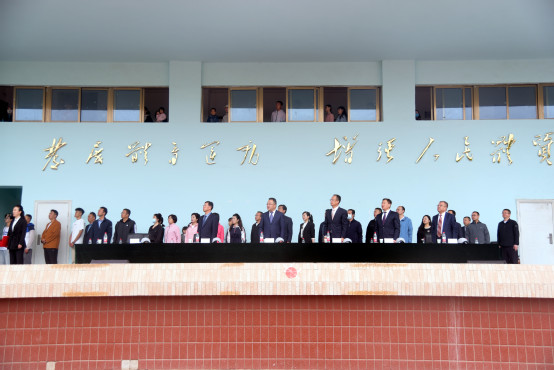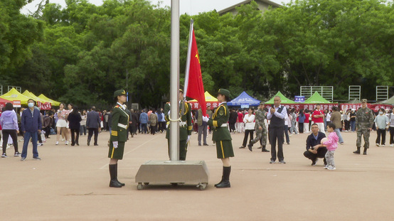 开幕式上,全体人员肃立,升国旗,奏唱国歌。