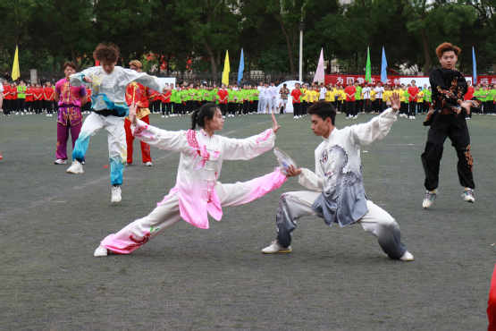 在“五育并举”创新改革展演环节,50余名学生的轮滑表演,尽显青春活力;200余名各学院学生联袂演出的体育舞蹈,展现了学校在体育创新改革和全力推进“五育并举”方面的新突破;近500名学生共同演绎的“活力健身操”将现场气氛推向高潮;由1200名体育学院学生演绎的武术联演,充分展现了中华传统优秀文化的精神气。