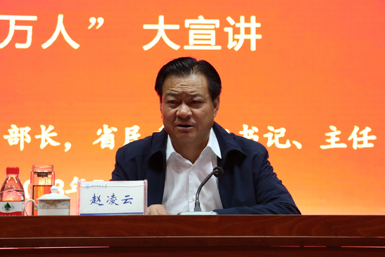 赵凌云在报告中紧紧围绕学习贯彻习近平总书记关于加强和改进民族工作的重要思想、关于宗教工作的重要论述,贯彻落实中央、省委民族工作会议和全国、全省宗教工作会议精神,结合我省实际进行了宣讲。他强调,要以习近平新时代中国特色社会主义思想为指导,加强和完善党对民族宗教工作的全面领导,切实增强在“两个大局”下做好新时代党的民族工作的使命感责任感,坚持把铸牢中华民族共同体意识贯穿党的民族工作全过程各方面。