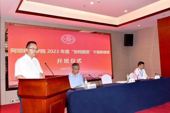 7月3日,阿坝师范学院2023年度“协同提质”干部研修班在西北师大开班。西北师大党委书记贾宁,阿坝师范学院党委副书记、校长向武,西北师大党委副书记刘玉泉出席开班式,阿坝师范学院参加培训的党务、教学科研管理干部及西北师大继续教育学院相关负责人参加。