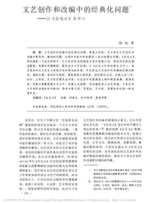在刚刚出版的《中国社会科学文摘》2023年第7期,西北师大传媒学院院长徐兆寿教授原刊发于《中国文学批评》2023年第1期的《文艺创作和改编中的经典化问题——以〈白毛女〉为中心》一文被全文收录。作系国家社会科学基金重大项目百年中国影视的文学改编文献整理与研究项目编号:18ZDA261阶段性成果。