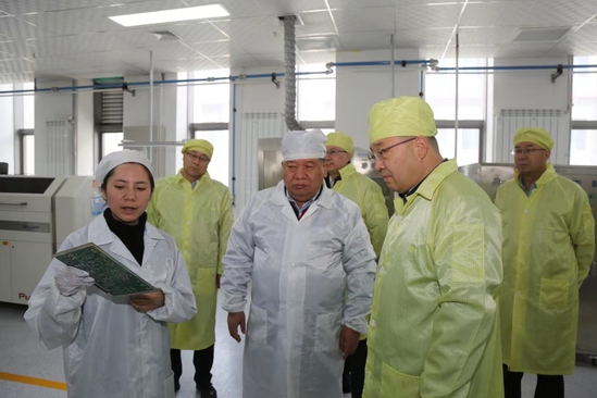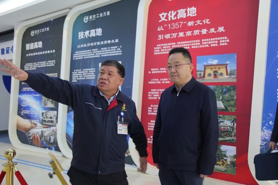 贾宁一行先后参观了万里公司“5658空间”、“根·魂”厅、“万里明天”展厅、数字电装生产线、智能明实验室、智能制造中心、甘肃省航空电作动重点实验室等,详细了解了万里公司发展历程、专业分布、科研生产能力、党建文化、人才引进等情况。