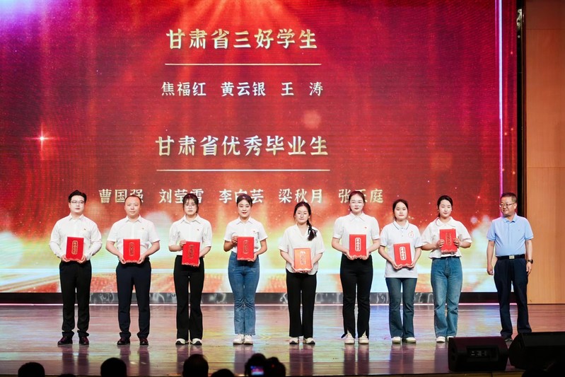 活动现场,领导嘉宾为马克思主义学院优秀共青团干部、优秀共青团员、优秀学生会(研究生会)工作人员、考研先锋、甘肃省三好学生、甘肃省优秀毕业生、国家奖学金、国家励志奖学金、思想政治理论课学习标兵等颁发证书。