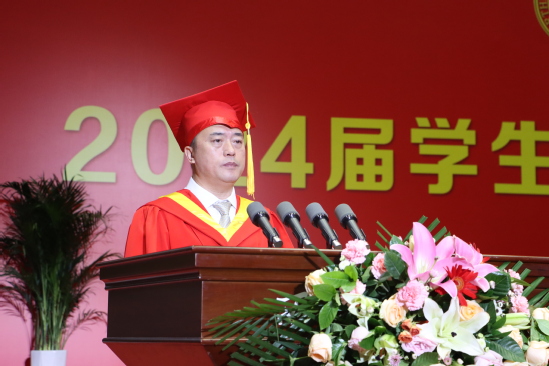 “图书馆、云衢楼珍藏着你们奋笔疾书、刻苦学习的身影;运动场、轮滑场闪耀着你们放飞自我、激扬青春的风采;水塔山下、如意湖畔记录着你们青春浪漫、天真无邪的时光。”在离别之际,王占仁深情寄语本科毕业生,希望你们带着知行合一的精神底色,秉诚守正,耕耘求索,像“云亭耕读园”奋力抽穗的小麦一样成长成才、生生不息,用青春年华奏响属于自己的慷慨与激昂,成为以德润身、矢志奉献的先行者;希望你们能够始终保持对知识的渴望和对真理的追求,在未来的道路上坚持学习,在求真求实中不断延展人生的厚度与宽度,把“学为人师,行为世范”作为一生的行为准绳和价值追求,把文章写在大地上,在不懈奋斗中实现人生价值,成为脚踏实地、行稳致远的攀登者;希望你们超越自我,胸怀“国之大者”,敢想敢为又善作善成,找到毕生热爱的事,与志同道合的人协作奋进,路遥而不坠其志,行远而不改初心,以独属于青年人的锐气与勇毅,积极拓展生命的格局,成为持之以恒、不懈奋进的开拓者。
