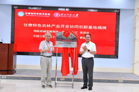 开幕式上,张世珍为院士专家颁发甘肃省科技智库联盟咨询专家委员会委员聘书;王占仁为院士专家颁发甘肃特色农林产业开发协同创新基地和甘肃省功能食品技术创新中心咨询专家委员会委员聘书。张世珍、曹福亮共同为甘肃特色农林产业开发协同创新基地揭牌;马腾宇、赵振文共同为甘肃省功能食品技术创新中心揭牌;张涛宣读甘肃特色农林产业开发协同创新基地批复。