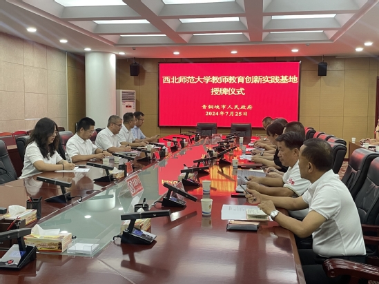 7月25日,西北师大“教师教育创新实践基地”授牌仪式在宁夏青铜峡市举行,副校长张明军,青铜峡市相关负责人出席仪式,西北师大教务处、研究生院、教师教育学院,青铜峡市教育局相关负责人参加。