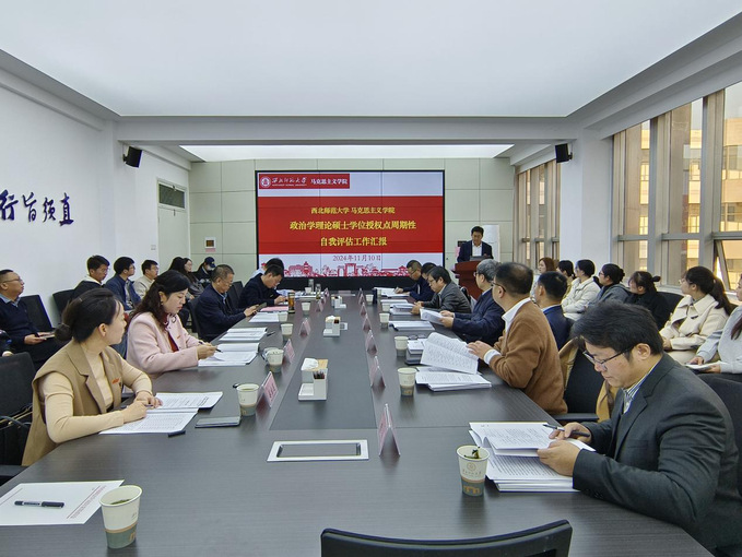 11月10日,西北师大召开政治学理论二级学科硕士学位授权点周期性合格评估自我评估评审会,党委副书记王全进出席会议并致辞。国务院学位委员会政治学学科评议组成员、南开大学韩召颖教授,中国高等教育学会国际政治研究专业委员会副秘书长、中国政法大学刘贞晔教授,中国政治学会副秘书长、西北政法大学张师伟教授,中国国际关系学会理事、兰州大学陈小鼎教授,山西大学慕良泽教授,西安交通大学朱旭教授,西北民族大学高永辉教授等7位评估专家出席。学校研究生院、马克思主义学院相关负责人及师生代表30余人参加。