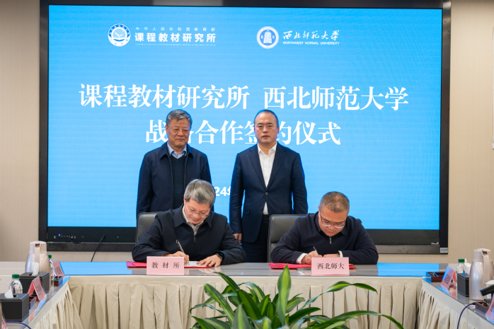 张国华表示,教材所与西北师大签署《战略合作框架协议》,是深入贯彻党的二十届三中全会、全国教育大会精神,落实《教育强国建设规划纲要(2024-2035年)》部署要求,加强东西部之间教育交流合作,服务教育强国建设的重要举措,也是教材所与西北师大在已有良好合作基础上进一步加强全方位战略协作,更好实现强强联合、优势互补、密切合作的迫切需要。期待双方落实好框架协议的各项内容,重点围绕强化专业研究队伍建设、加强学科建设和重点项目合作攻关研究、合作指导西部基础教育课程改革实验区,互聘研究生导师、举办高端学术活动、开展国际交流、服务国家课程教材高质量建设等方面,加大合作力度。