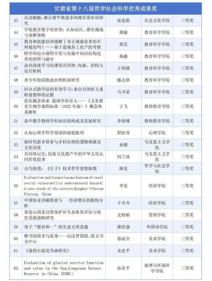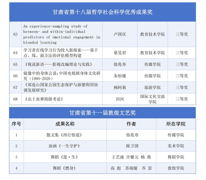 西北师大多项成果荣获甘肃省哲学社会科学优秀成果奖及敦煌文艺奖
