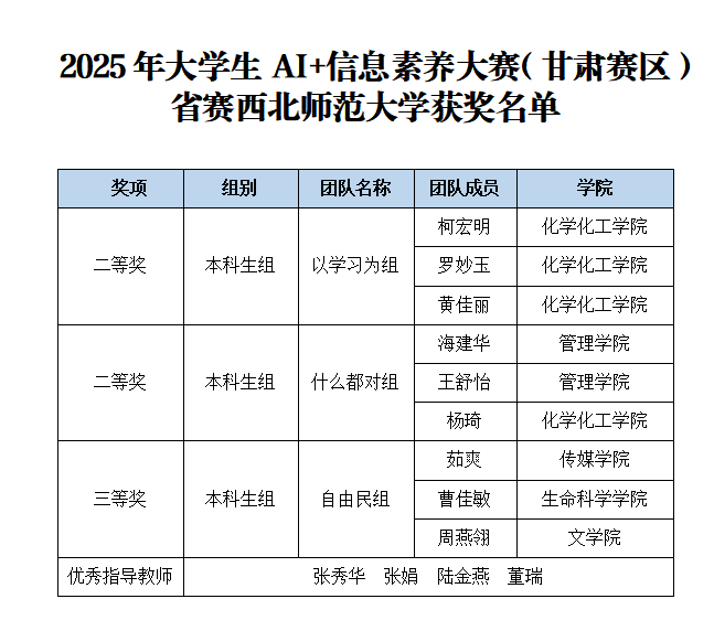 西师学子在2025年大学生AI+信息素养大赛(甘肃赛区)中荣获佳绩